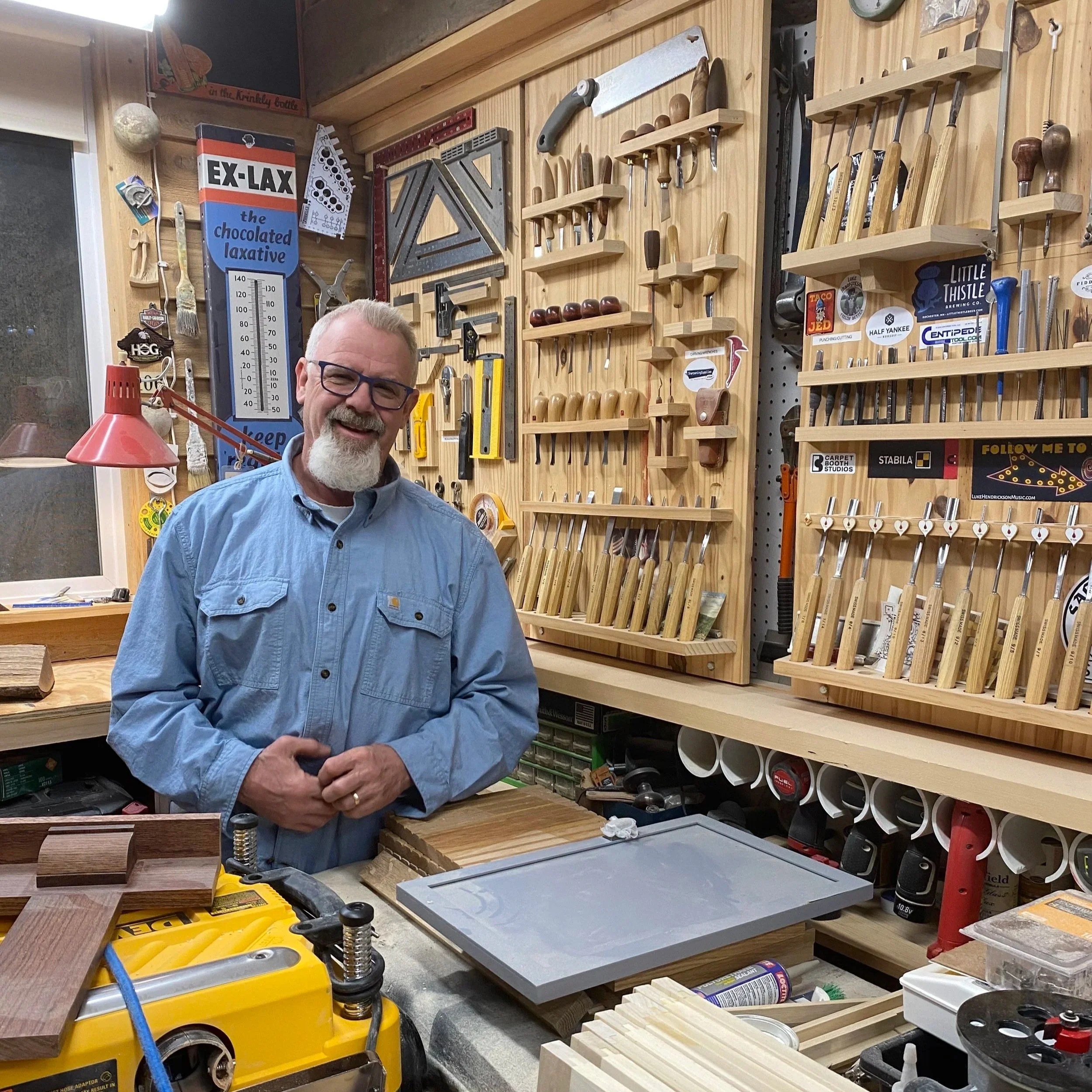 Kevin Ewing is a Rochester, Minnesota-based artist whose work seamlessly blends craftsmanship with nature-inspired design. Beginning his artistic journey in the 1980’s with a small cabinet shop in the historic Winona Depot Freight House, Ewing found himself drawn to the art of carving, incorporating intricate details into his custom-built furniture. Today, his work primarily takes the form of architectural elements and wall art, often exploring theme of nature - leaves, trees, and organic forms- through meticulously crafted relief carvings. (His work can be viewed on instagram at @kevinkewing)